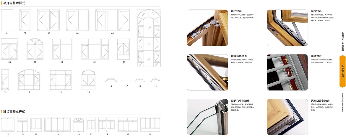 斷橋窗主要包括隔熱斷橋型材,玻璃,五金配件,膠條.其中最主要的斷橋型材由三部分 組成,即室內(nèi)、外兩部份合金型材,中間部分用一種尼龍PA-66材料連接成一體,中間連接部分叫“斷熱冷 橋”,冷橋不僅是結(jié)構(gòu)強(qiáng)度和抗老化性能滿(mǎn)足門(mén)窗的要求是一種好的隔熱材料,起到在冬天時(shí)暖流不向外流失 熱量,夏天外部熱量不流向內(nèi)部的屏障。